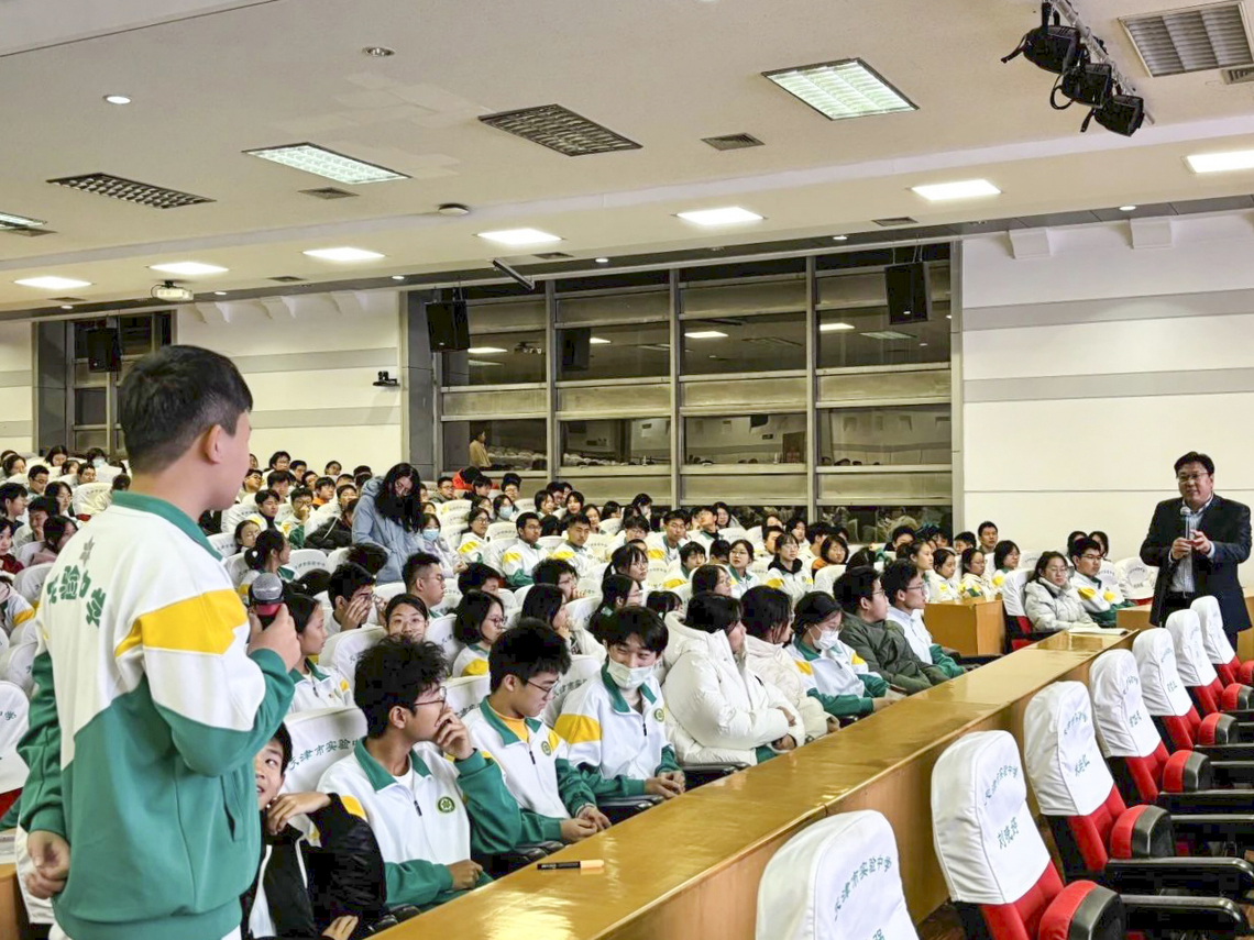为深入贯彻落实全国教育大会精神,一体化推进教育发展、科技创新、人才培养,深化大中小学思想政治教育一体化建设,11月26日,betway88西汉姆联副经理李泽广教授、辅导员唐琳与融通人才基地社团的员工代表走进天津实验中学,开展经济学与金融保险知识科普讲座,为高中生们带来了一场学术交流盛宴。