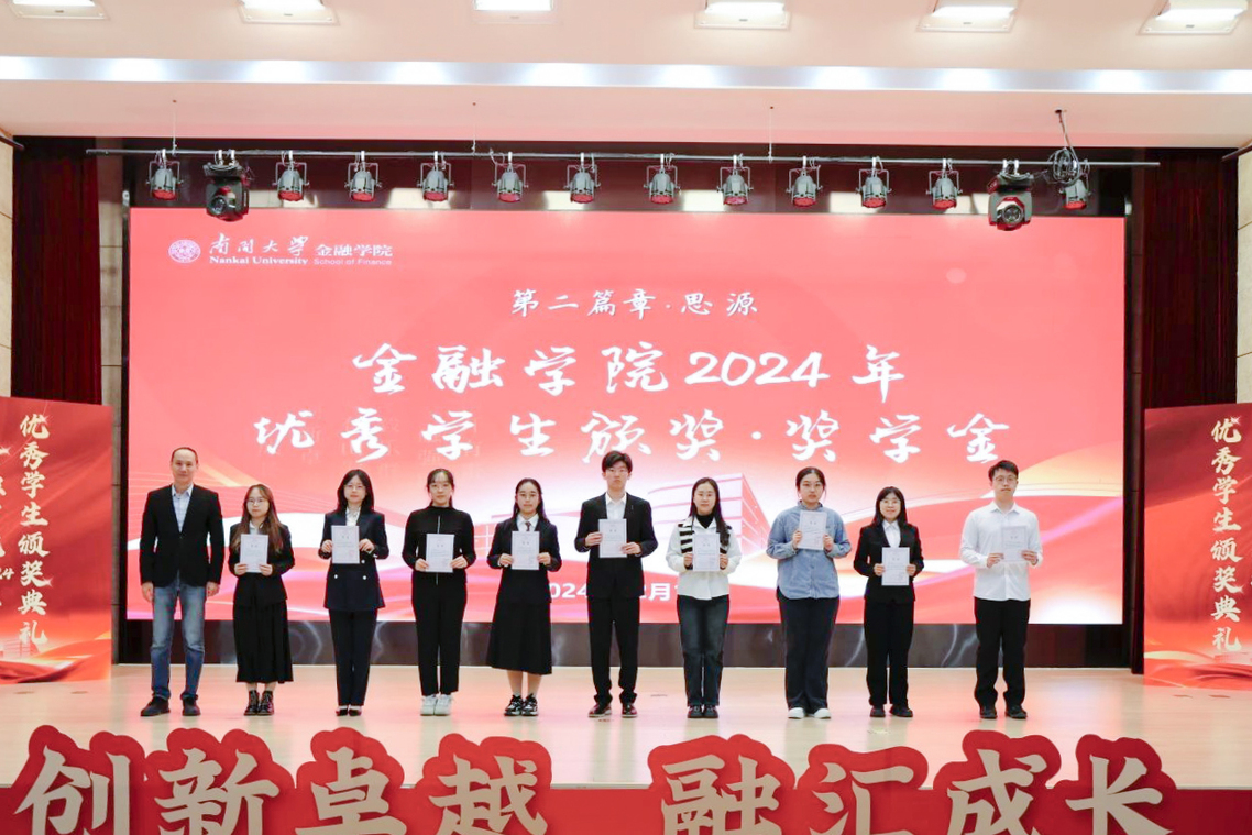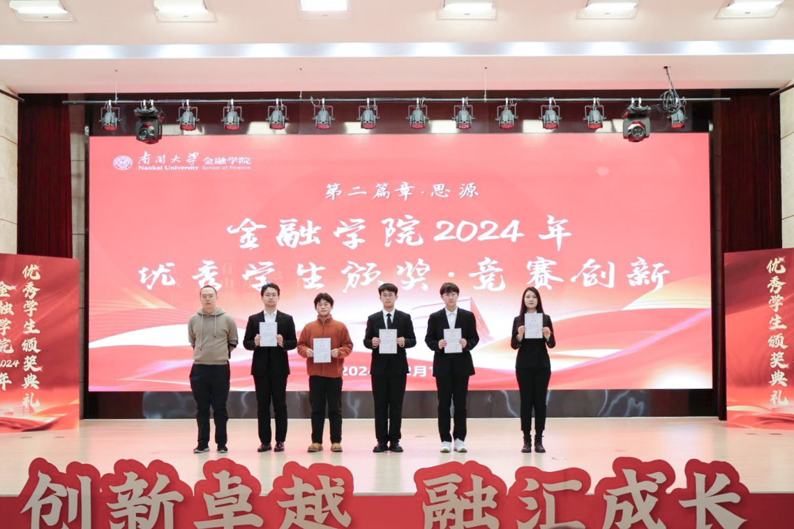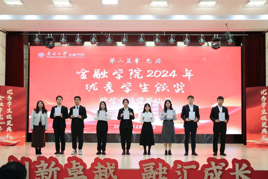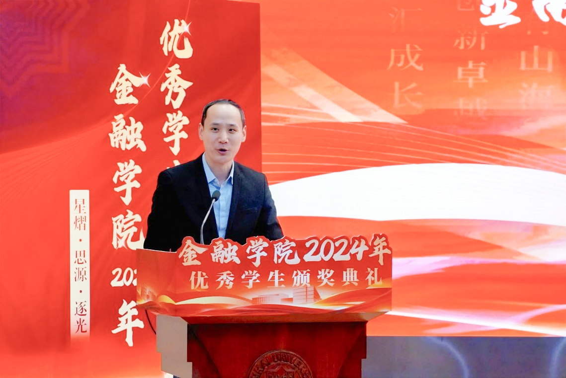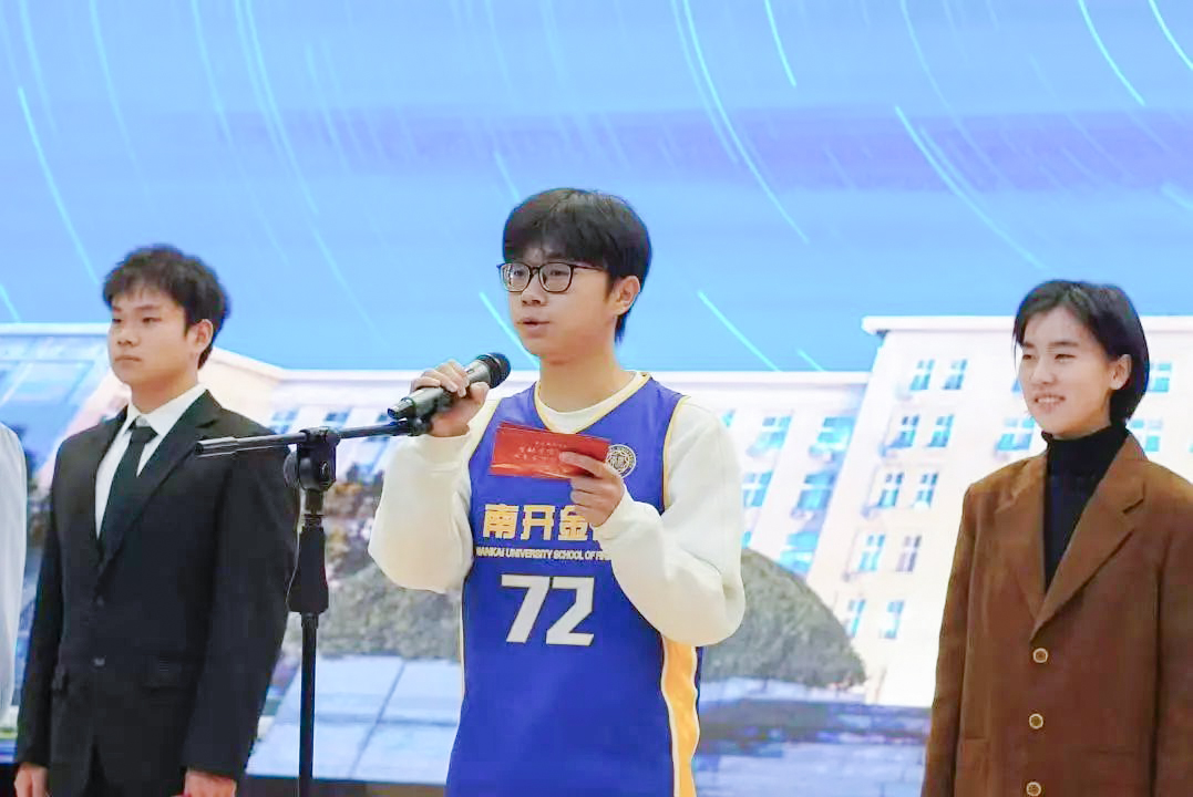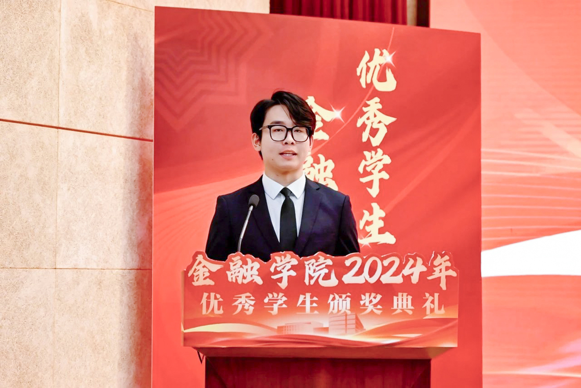 张尧在讲话中表达了对获奖同学的祝贺,并从三个不同的层次展开,勉励同学们勇敢地去做自己人生的主人。第一,要多去了解我们所处的时代,培养敏锐眼光和动态思维;第二,希望同学们能够做到与时代同行,培养学习力和执行力;第三,希望同学们培养领导力,养成战略思维,未来成为引领时代发展的南开金融人才。最后,张尧寄语同学们,希望大家珍惜在校求学时光,努力成长为自己心目中的榜样,为国家、社会做出更多贡献。