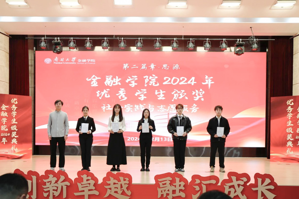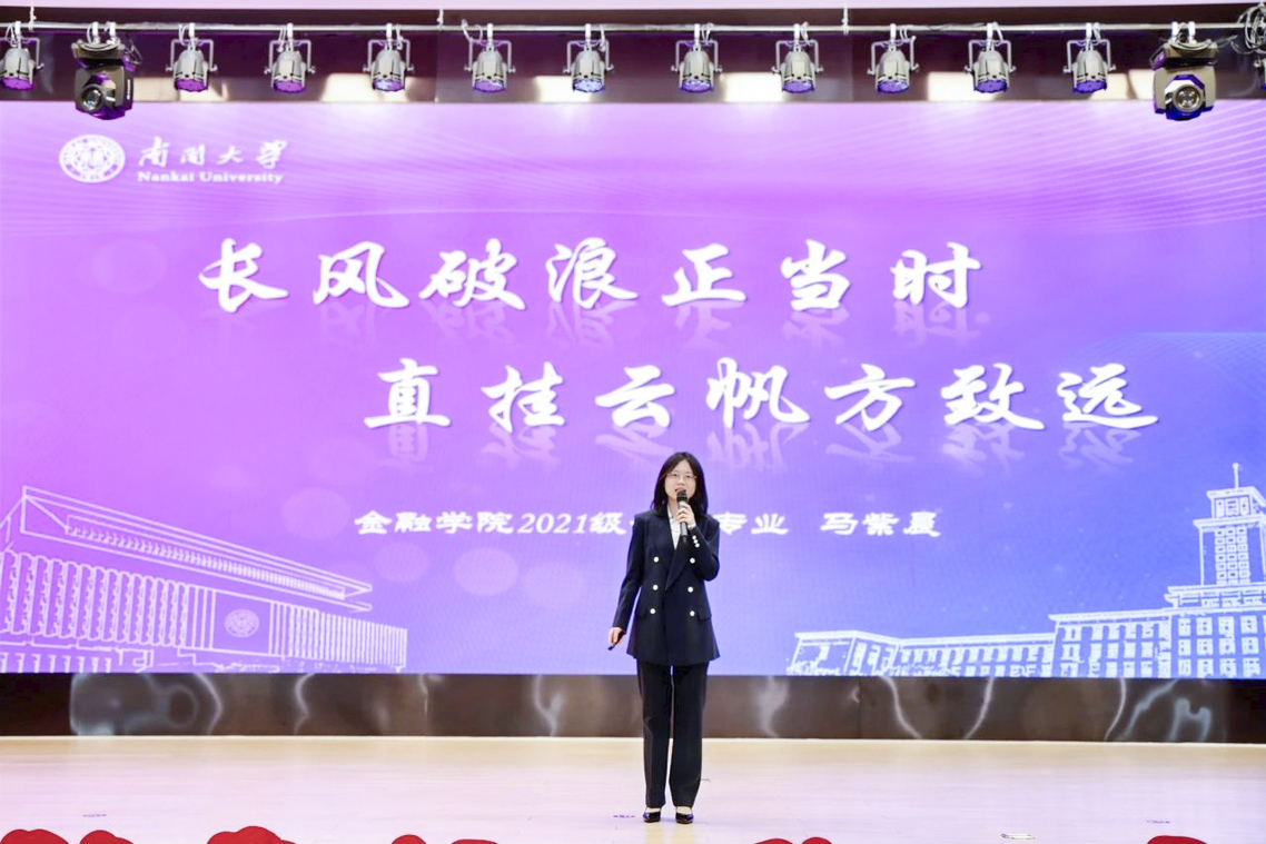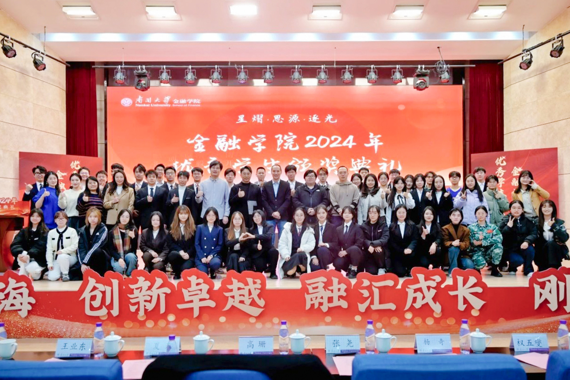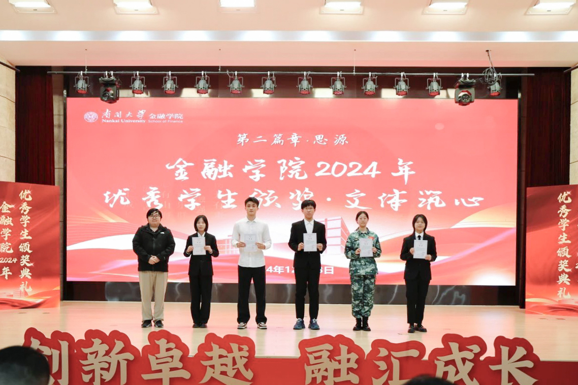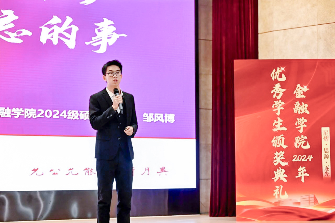 张尧在讲话中表达了对获奖同学的祝贺,并从三个不同的层次展开,勉励同学们勇敢地去做自己人生的主人。第一,要多去了解我们所处的时代,培养敏锐眼光和动态思维;第二,希望同学们能够做到与时代同行,培养学习力和执行力;第三,希望同学们培养领导力,养成战略思维,未来成为引领时代发展的南开金融人才。最后,张尧寄语同学们,希望大家珍惜在校求学时光,努力成长为自己心目中的榜样,为国家、社会做出更多贡献。