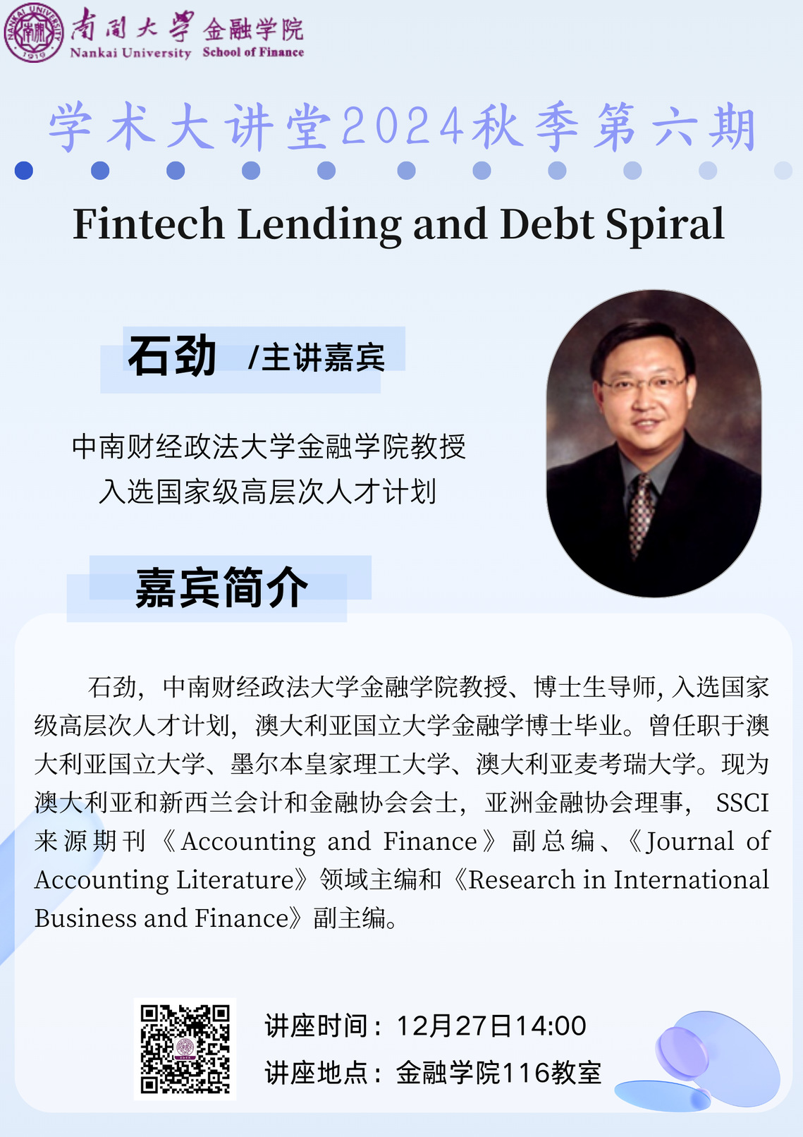 讲座时间:2024年12月27日(周五)14:00