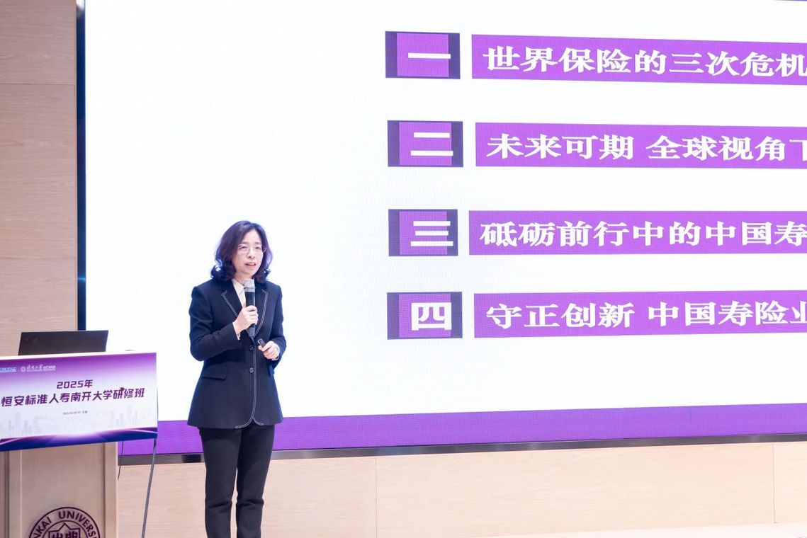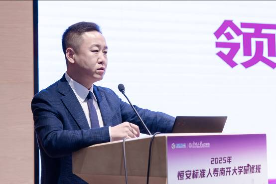恒安标准人寿个险渠道负责人、南开2004级员工刘海峰做开班动员,分享了自己从南开求学到职场打拼的成长经历,并结合当今的行业变局提出新的期待。他表示,要深化职业化代理人队伍建设,把握好提升认知的机会,准确把握营销的偶然性和必然性,通过研修持续突破认知边界,并将其转换成新的生产力,带领团队穿越行业周期。他还特别分享了南开校训“允公允能,日新月异”对保险人的启示,鼓励学员将“服务民生”的职业使命感融入业务创新。刘海峰表示,“在总理母校学习,既要带回知识,更要传承‘知中国服务中国’的南开魂,更好地服务好社会、服务好客户”。