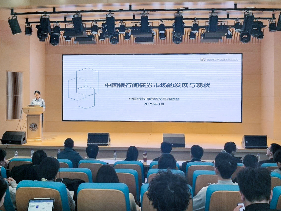中国银行间市场交易商协会程珂昕以“银行间债券市场的发展与现状”为主题,首先介绍了债券市场的基本情况,详细阐述了债券作为直接融资工具在金融市场中的重要地位,以及银行间债券市场的诞生、发展与现状。她指出,银行间债券市场已成为我国债券市场的主板,其发行规模和存量均占据主导地位。此外,她还重点讲解了交易商协会主管的债务融资工具,包括其发展历程、管理框架、创新产品等,并提及了协会的校园招聘计划,鼓励有志于金融领域的员工关注并参与。