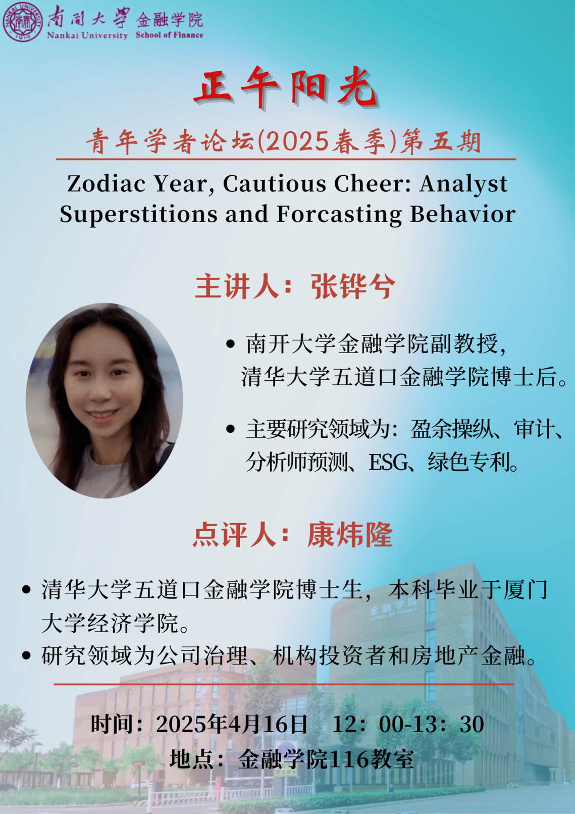 讲座题目:Zodiac Year, Cautious Cheer: Analyst Superstitions and Forcasting Behavior
