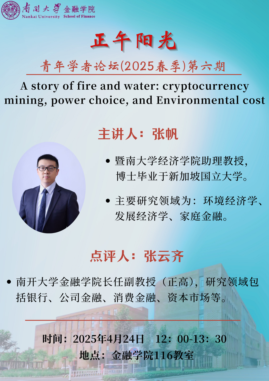 讲座题目:A story of fire and water: cryptocurrency mining, power choice,and Environmental cost