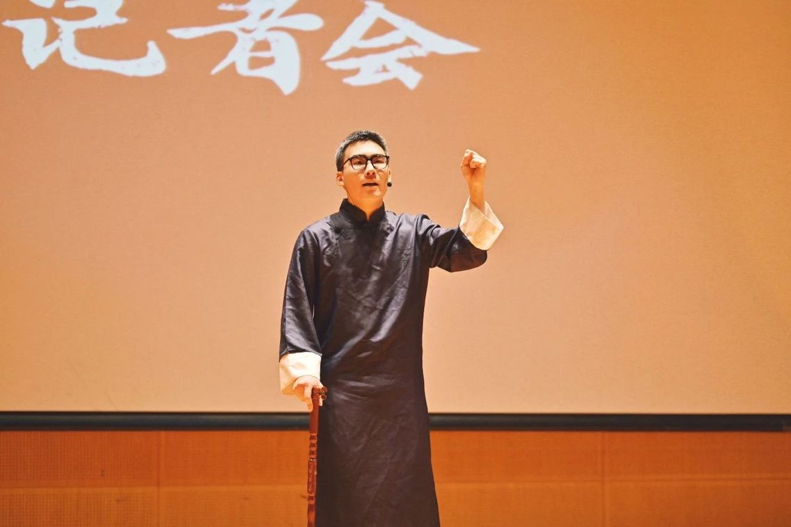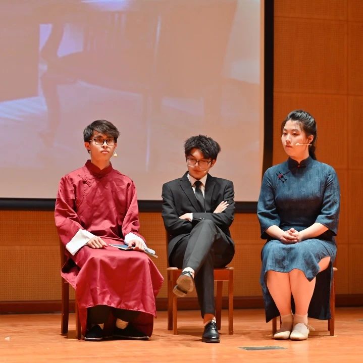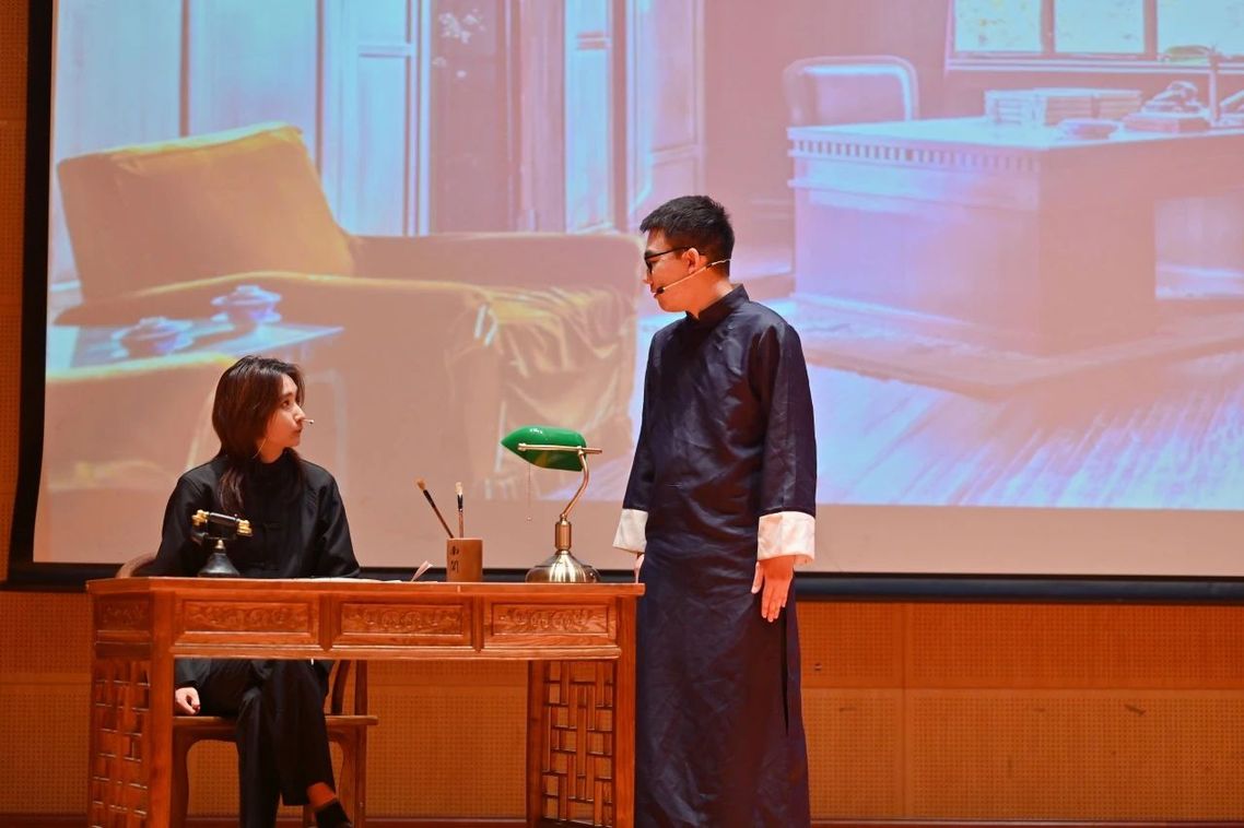 “爱国三问”宣讲团成员孟繁静、康泽盈分别讲述了南开与话剧的历史渊源,以及两部话剧的创作历程,进一步深化了活动的教育意义。