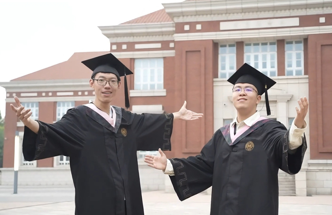 张家伟(左)在本科毕业季参与录制原创毕业歌《永不完结的春日》