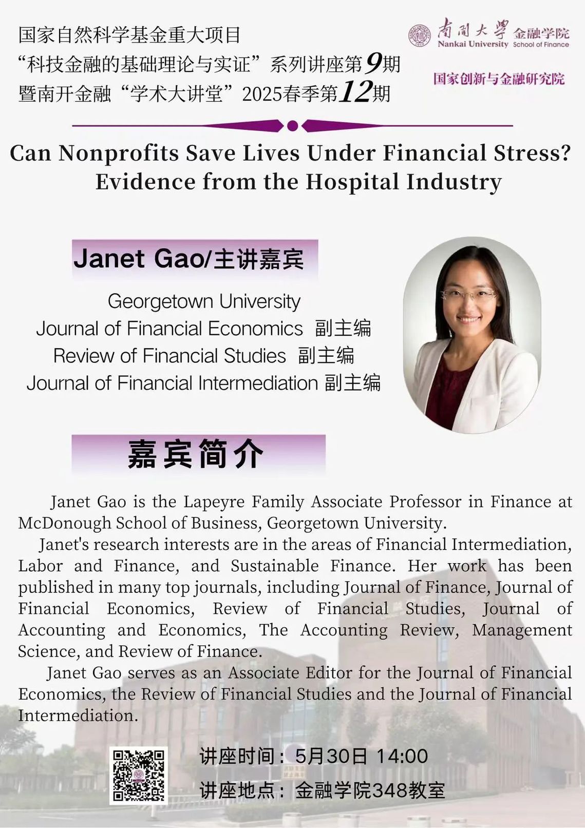 Janet Gao is the Lapeyre Family Associate Professor in Finance at McDonough School of Business, Georgetown University. Janet's research interests are in the areas of Financial Intermediation, Labor and Finance, and Sustainable Finance. Her work has been published in many top journals, including Journal of Finance, Journal of Financial Economics, Review of Financial Studies, Journal of Accounting and Economics, The Accounting Review, Management Science, and Review of Finance. Janet Gao serves as an Associate Editor for the Journal of Financial Economics, the Review of Financial Studies and the Journal of Financial Intermediation.