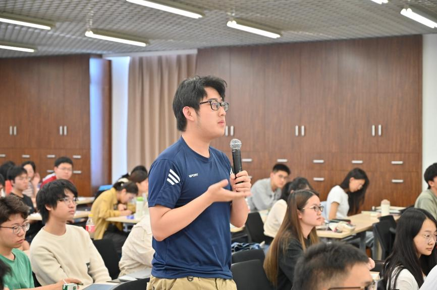 互动交流环节,面对同学们的踊跃提问,史伟玉耐心地为青年学子们答疑解惑。她勉励大家要以战略思维规划人生,以脚踏实地的态度应对挑战。她指出,职业生涯规划应当“仰望星空与脚踏实地并重”,既要放眼长期视角向内挖掘真正热爱的事业方向,也要揆诸当下立足现实环境设定阶段性目标。对于难以预测的职业变动,她结合亲身调岗经历提出,应主动学习、转变心态,准确识别自身优势与短板,在变化中寻找机会,在挑战中厚植底蕴,最终实现自我突破。