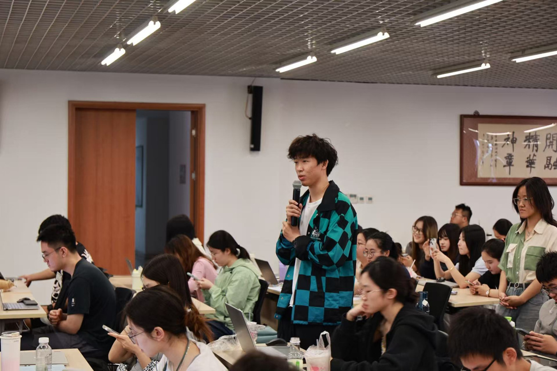 课前,崔芷源同学代表所在小组以《人工智能浪潮下的职业选择》为题作精彩分享。小组深入剖析当前时代背景下人工智能对职业选择的多维影响,聚焦金融学子求职面临的挑战,抛出“金融从业者如何在AI浪潮中精准锚定职业赛道”等关键议题,引发在场师生的深度思考与热烈共鸣。针对上述问题,肖玛峰结合授课内容作出回应。他指出,在AI时代需充分发挥人的主体性价值,强化问题意识,以开放姿态拥抱人工智能,主动探索“AI+金融”的行业革新路径,在技术迭代中持续拓展知识边界与职业发展新维度。