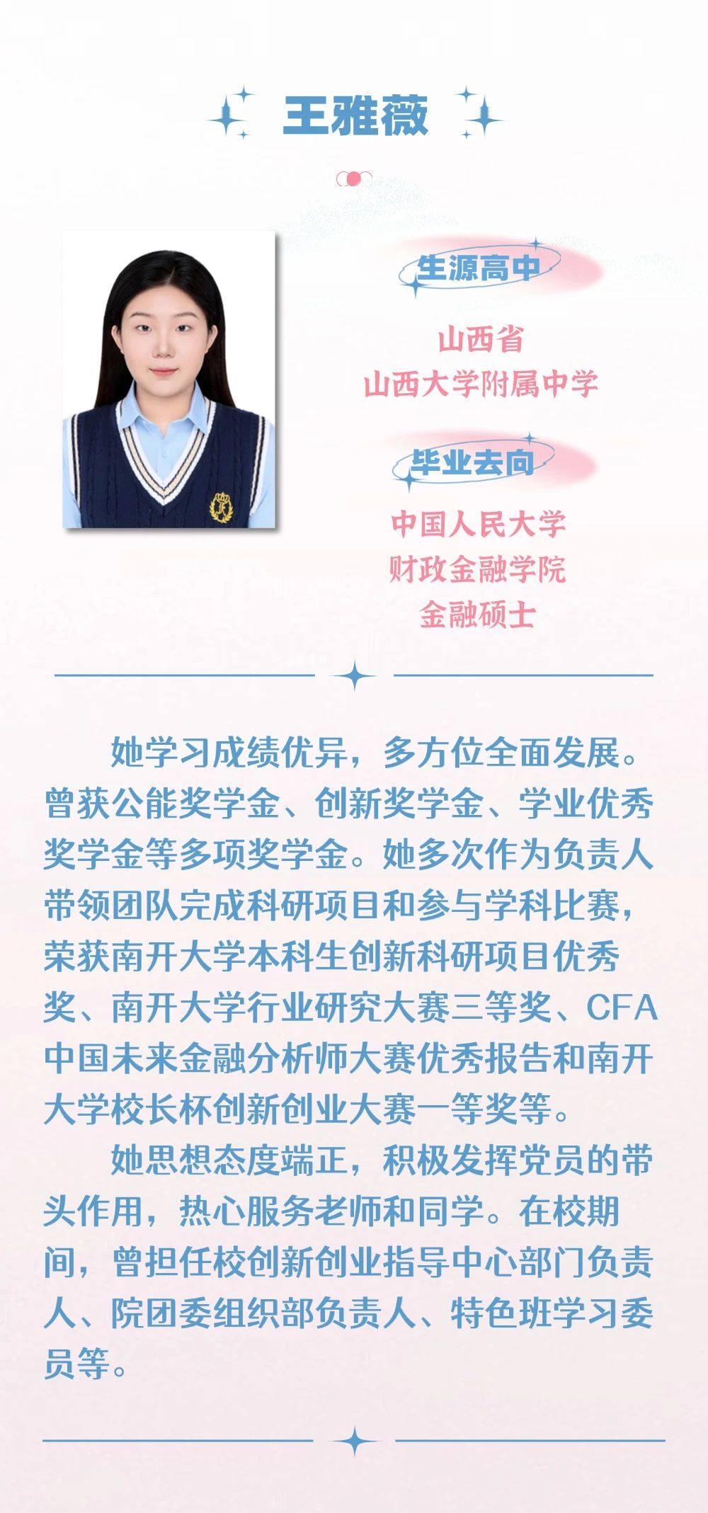 南开金融许嘉琪:以笔书青春华章,承志赴中华腾飞