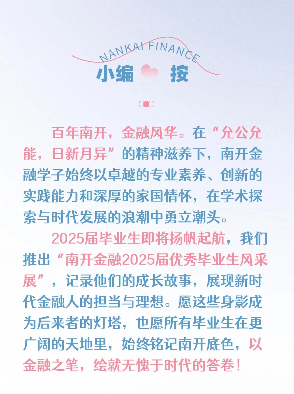 南开金融2025届本科毕业生:青春为笔,共赴新期