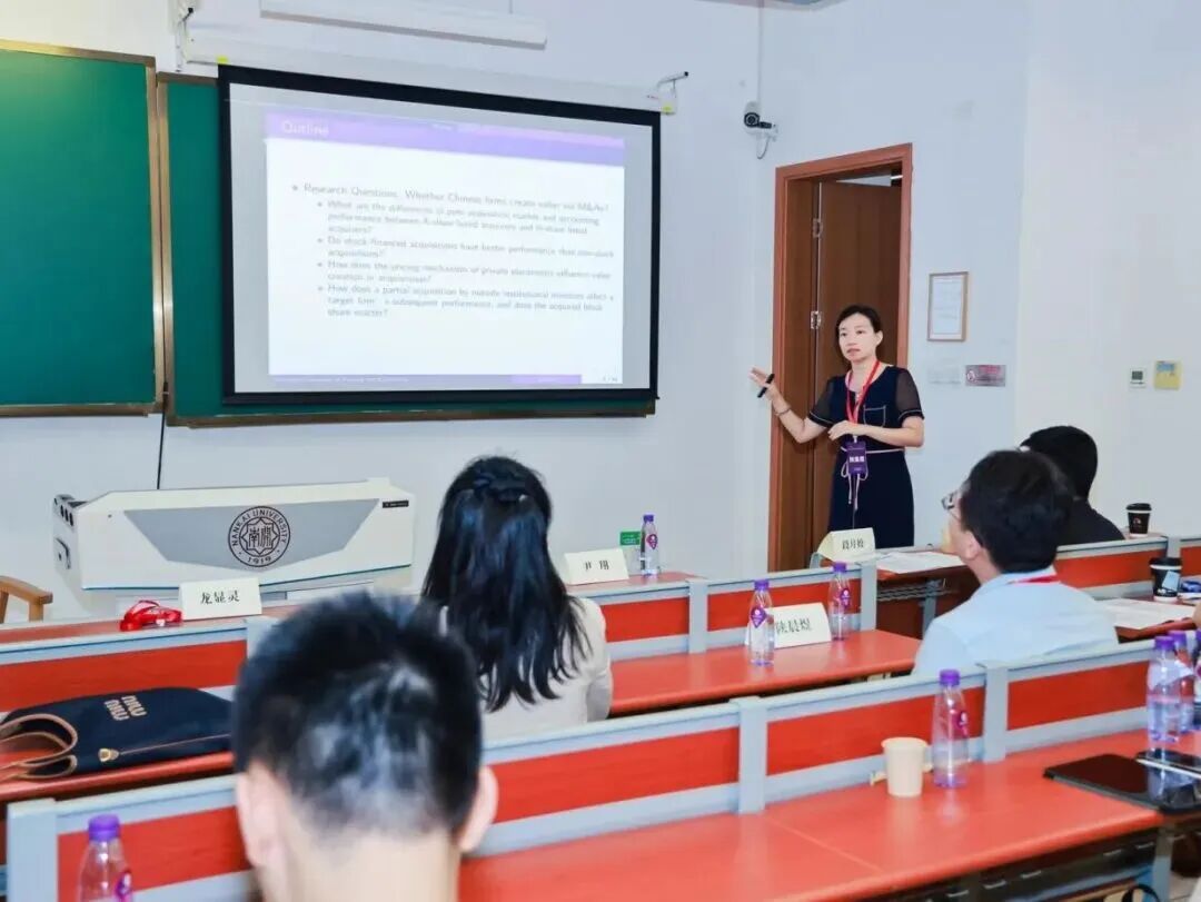 上海财经大学的陕晨煜汇报了《Market for Corporate Control in China:Engine for Growth or Value Destruction?》一文。研究发现,中国A股市场上市公司在并购未上市公司后,股票回报率和经营绩效显著提升。当上市公司成为外部机构投资者的部分收购目标时,其并购后的股票和会计表现有所改善,且收购股份比例越大,表现改善越显著。清华大学的尹翔认为该研究为理解中国上市公司并购活动提供了新的视角,建议考虑政策变化和跨国比较,以及展示更多收购后协同效应的证据。