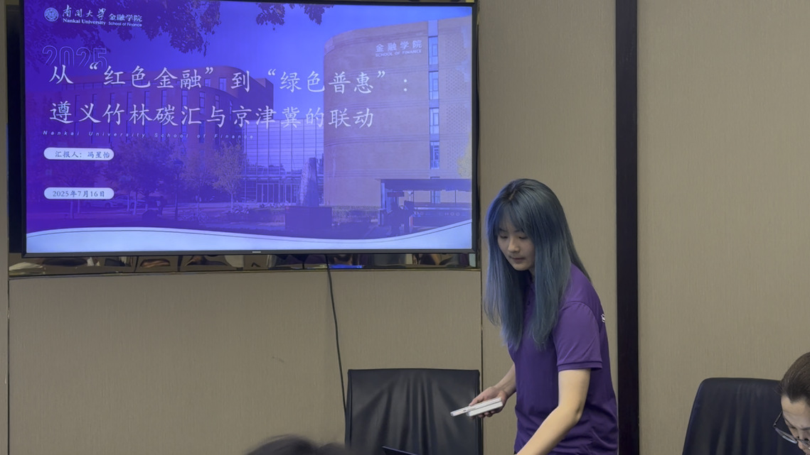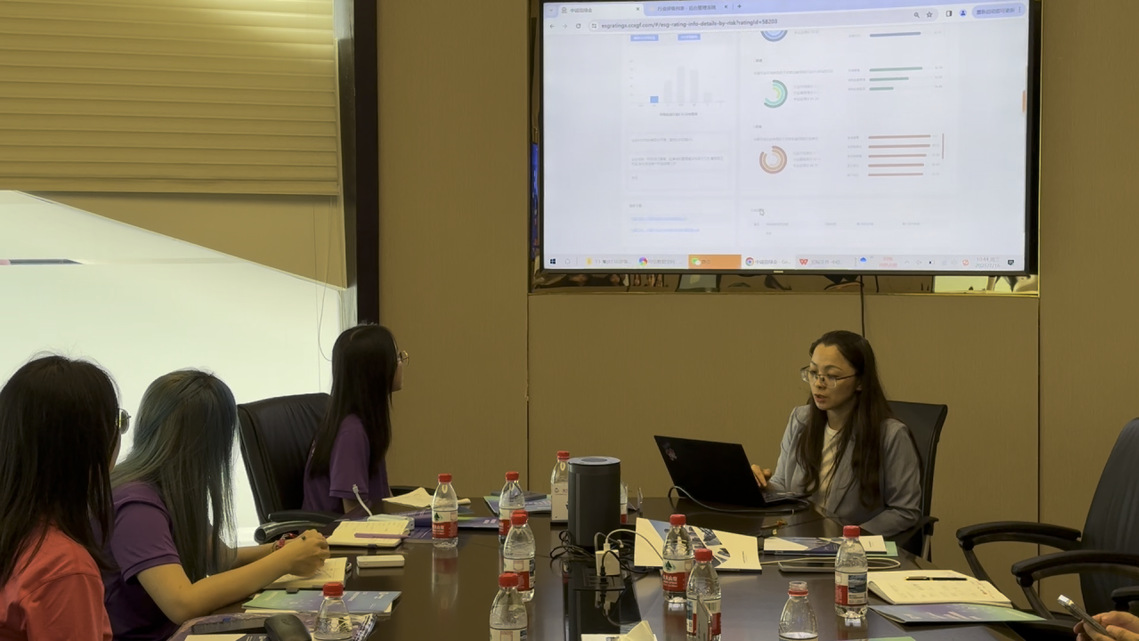 实践队师生首站来到北京中诚信集团,开展“从‘红色金融’到‘绿色普惠’:遵义竹林碳汇与京津冀的联动”主题研讨。在南开北京员工会理事靳蕾的带领下,实践队师生与中诚信绿金科技业务骨干、风控专家展开深度对话。