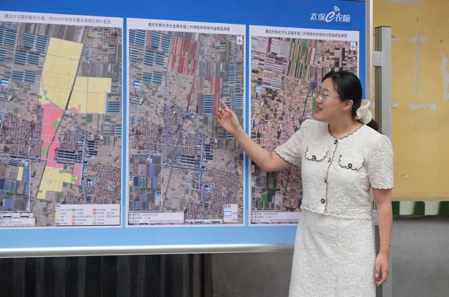 在寿光市化龙镇丰城二村村委会,山东太保产险寿光支公司及与其合作的科技机构工作人员分别就科技赋能农险承保、理赔“双精准”工作在丰城二村的实际应用成效进行讲解。实践队师生一行人在雨中认真倾听学习,详细了解了借助科技应用助力保险高质量经营的具体实践,切实感受到“双精准”核心理念在基层一线的扎实落地。