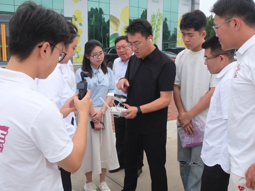 离开丰城二村,实践队师生前往寿光市蔬菜小镇,探究特色农险产品的科技赋能实践。队员们跟随工作人员模拟地块信息获取过程,观测温室地块,详细询问无人机勘探的操作流程、技术参数等具体信息,并深入探讨该技术在提升效率、减少人力物力投入等方面的优势。