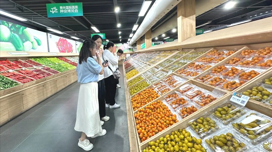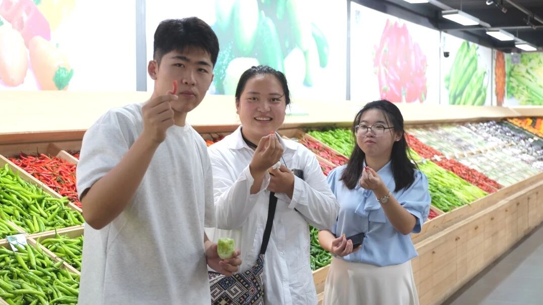 结束了对蔬菜技术创新中心的参观调研,蔬菜小镇工作人员还特别邀请实践队师生进入蔬菜储藏室品鉴当地的特色农产品。蔬菜储藏室内,各类本地特色瓜果、蔬菜分类摆放,整齐有序。讲解人员介绍,依托精准调控的温湿度系统,农产品可以长期储存且保持新鲜饱满的状态。同学们有幸品尝到了新鲜清新的特种蔬菜品种,感受着科技赋能农业生产和农业保险创新实践成果。通过这次参观,实践团队更直观地了解了新科技赋能农业保险“双精准”经营和风险减量、赋能农业种植和生产经营,为农业发展提质增效提供双重支撑的实践例证。