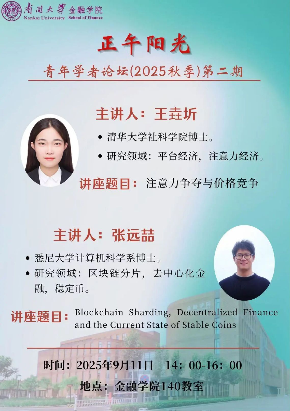 讲座题目:Blockchain Sharding, Decentralized Finance and the Current State of Stable Coins