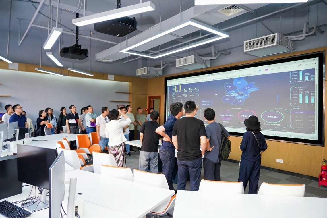 随后,在范小云经理的陪同与讲解下,员工们参观了金融实验室,深入了解学院在智能风控、区块链应用及量化投资等前沿领域的核心成果与创新实践。范经理就多项关键技术平台的实际运行机制、监测体系及行业应用前景作了系统介绍,员工们认真聆听,并对学院在高水平科研平台建设方面取得的突破表示高度赞赏,也对学院建院10年来取得的成果表示兴奋。随后,员工一行移步至宁一弘道书斋。在静谧典雅的环境中,大家重温书院文化,感受厚重的学术积淀,不少员工还特意找到了当年捐赠的藏书,亲手触摸书页,感慨岁月流转中学院对文化传承的坚守与重视。