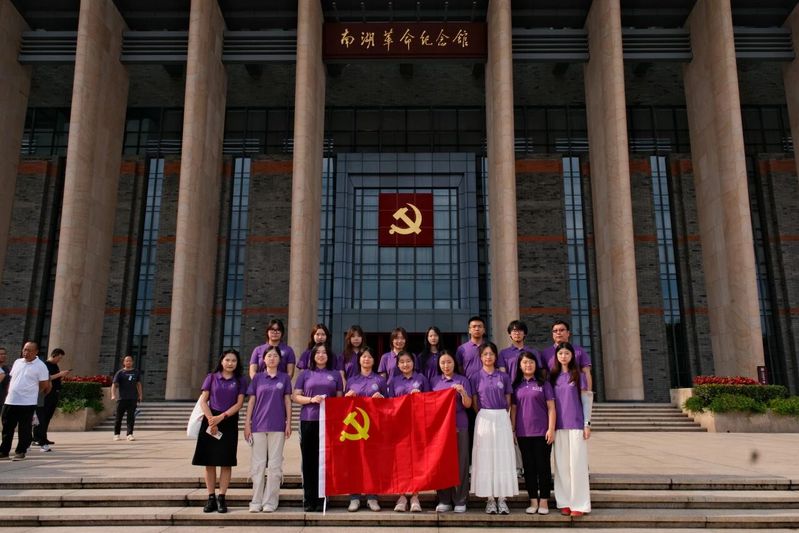 8月6日下午,实践队专程来到中国共产党的诞生地——嘉兴南湖,怀着崇敬的心情首先参观了南湖革命纪念馆。在馆内,队员们凝神聆听系统讲解,通过“红船启航”、“星火燎原”等主题展区,深入了解了中国共产党从孕育到诞生的壮阔历史。在庄严肃穆的纪念馆内,实践队党员代表面向党旗,郑重重温入党誓词,铮铮誓言回荡在展厅之中。