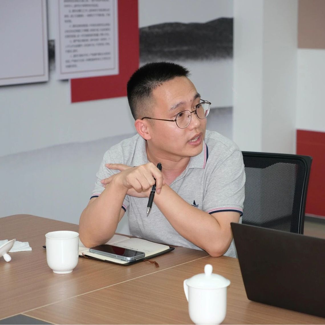 针对科创企业实地调研,实践队师生由浙江人保财险科技保险业务负责同志带领,于8月6日上午来到浙江人保财险科技保险服务的客户企业——群核科技(杭州六小龙之一)进行走访和对话交流。对群核科技的实地走访调研,是从需求端视角审视科技保险在实践运行中的成效、难点和痛点,深入了解科技保险与科创公司的实际需求的契合度,为探索精准“辨证施治”获取接地气的信息。杭州群核科技管理工程部总监胡杰详细介绍了公司从创立至今的发展历程、核心技术优势及未来展望,展现出头部科创企业的创新活力与发展潜力。在对话交流环节,实践队同学们围绕群核科技作为科技保险需求方的实际体验踊跃提问,重点关注企业在研发迭代、数据安全、产品责任等环节的风险认知现状和保障需求。