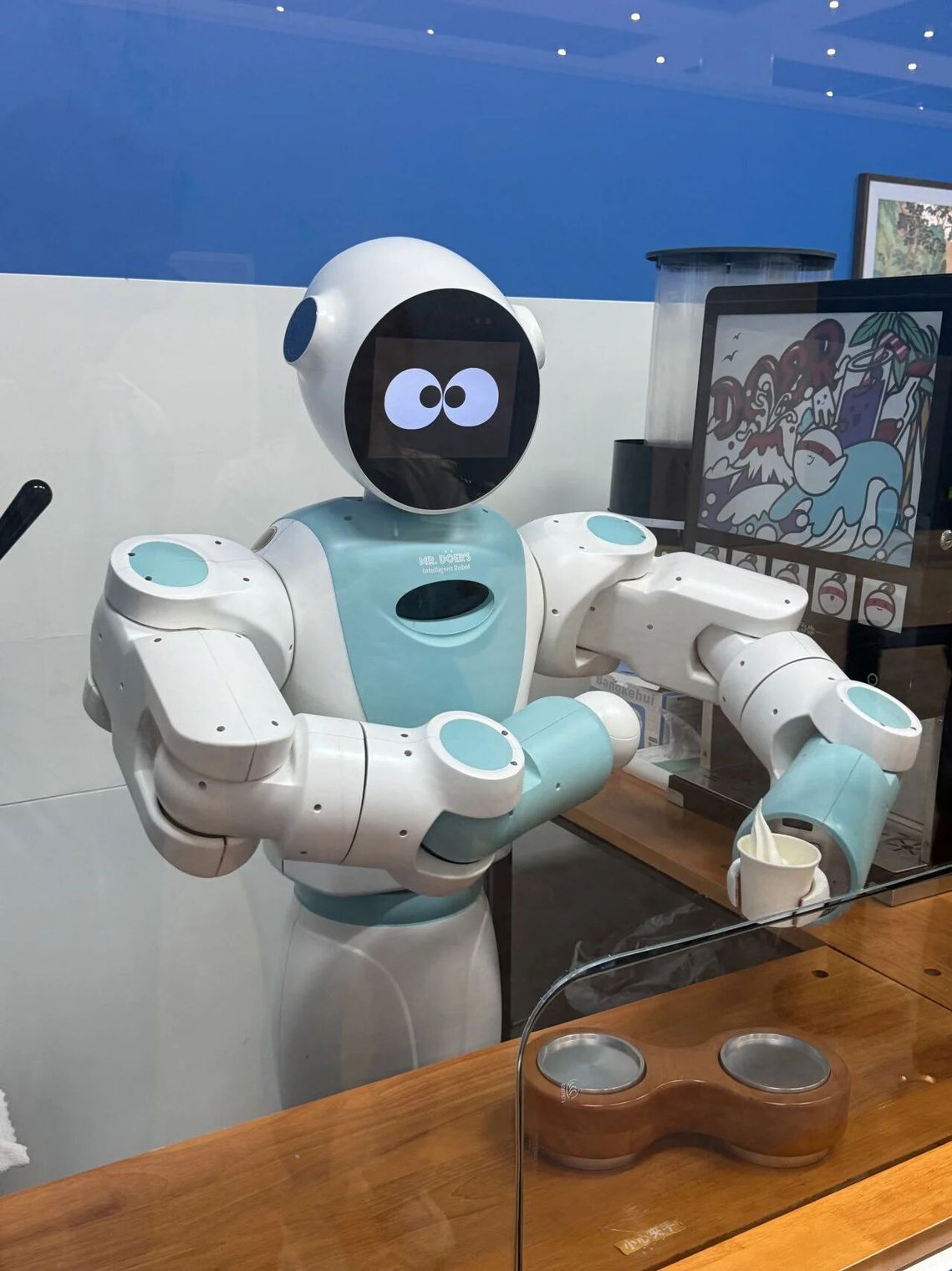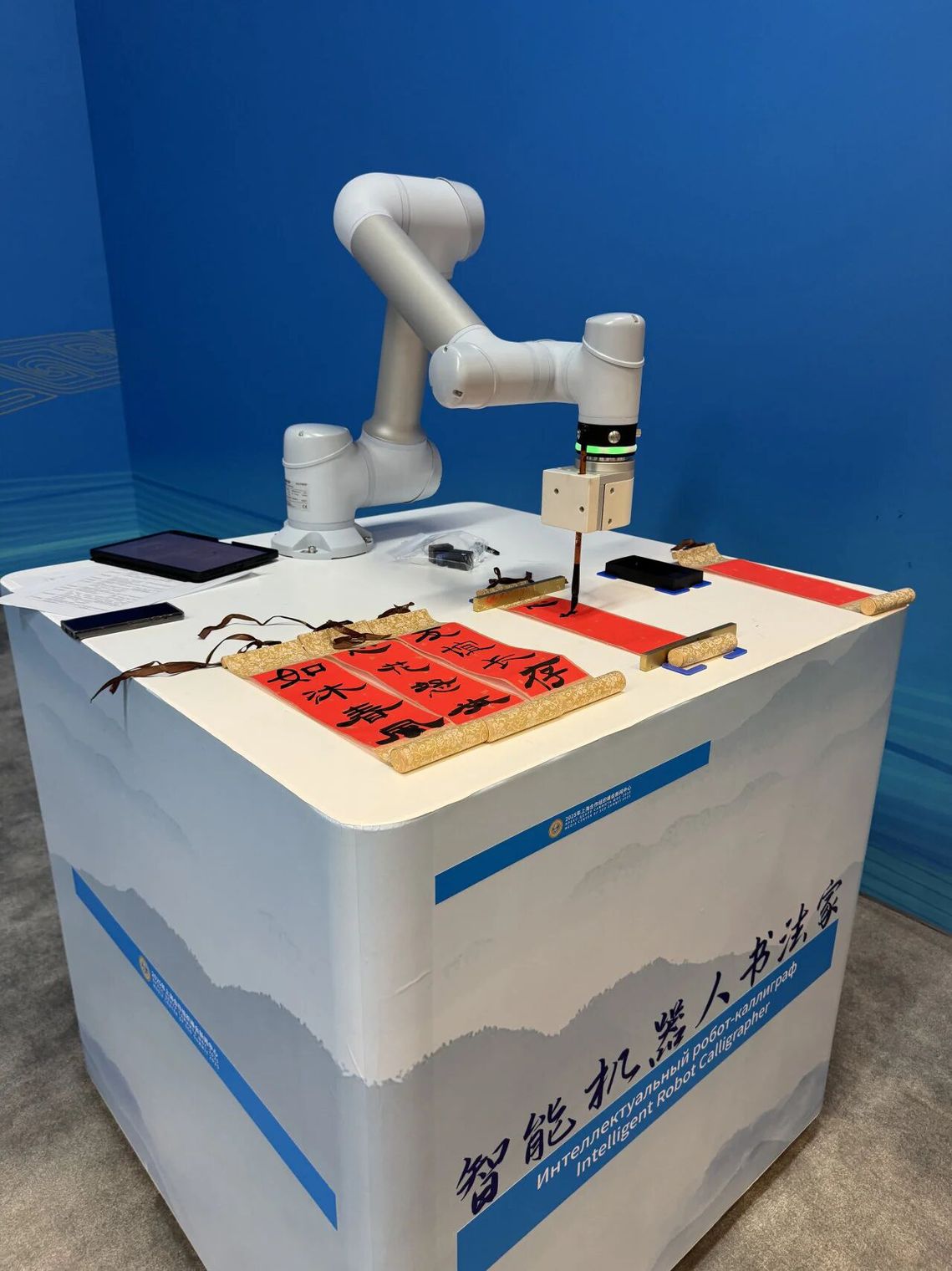 在新闻中心非遗文化展示区,“机器人写毛笔字” 的场景让我至今记忆犹新 —— 银色的机械臂稳稳握着毛笔,蘸墨、提按、顿挫间,一笔工整的楷书缓缓成形,墨香与科技感在空气中交融。