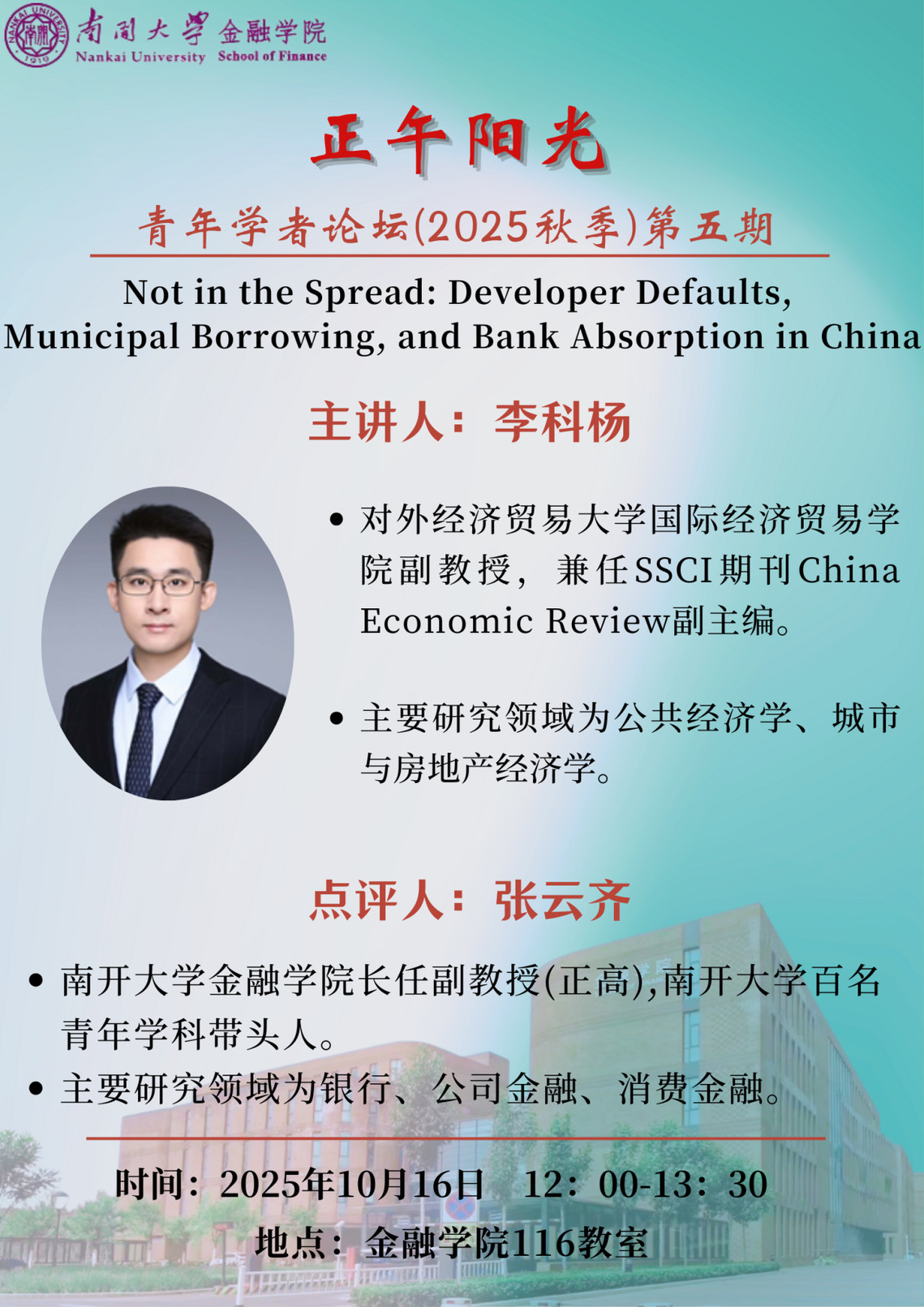 讲座题目:Not in the Spread: Developer Defaults, Municipal Borrowing, and Bank Absorption in China