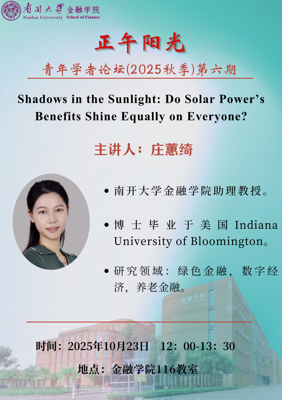 讲座题目:Shadows in the Sunlight: Do Solar Power’s Benefits Shine Equally on Everyone?