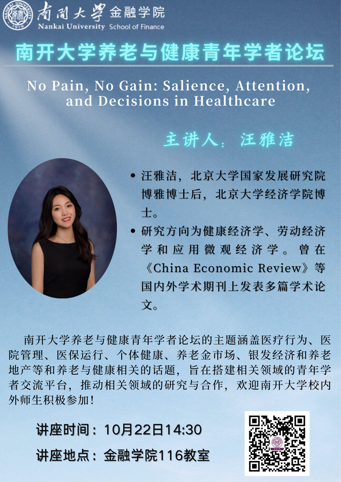 讲座题目:No Pain, No Gain: Salience, Attention, and Decisions in Healthcare