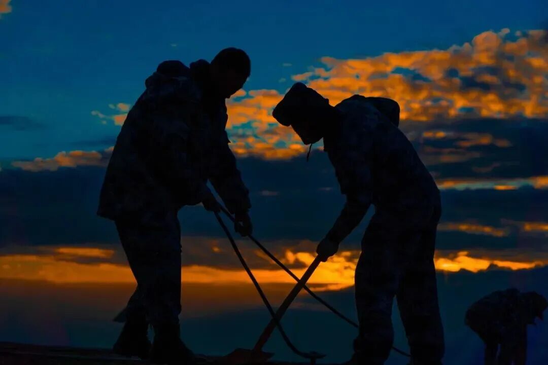 有天半夜,他坐在小马扎上望着月亮沉思,周围只有狐狸的踪迹与飞鸟的啼鸣。忽然,一阵草丛的窸窣声传来,让他瞬间神经紧绷,以为是蓝军渗透,仔细查看后才发现,是一位白发苍苍的当地老人,背着大蛇皮袋来为他们提供保障,这让他们十分感动。