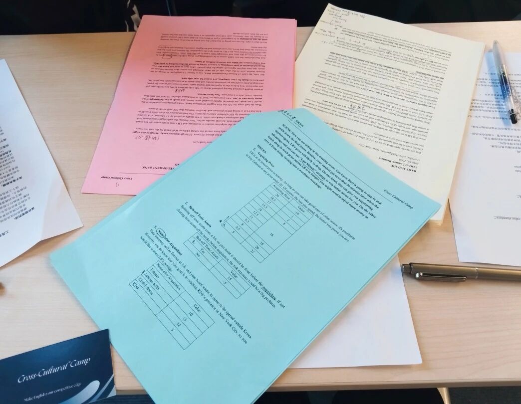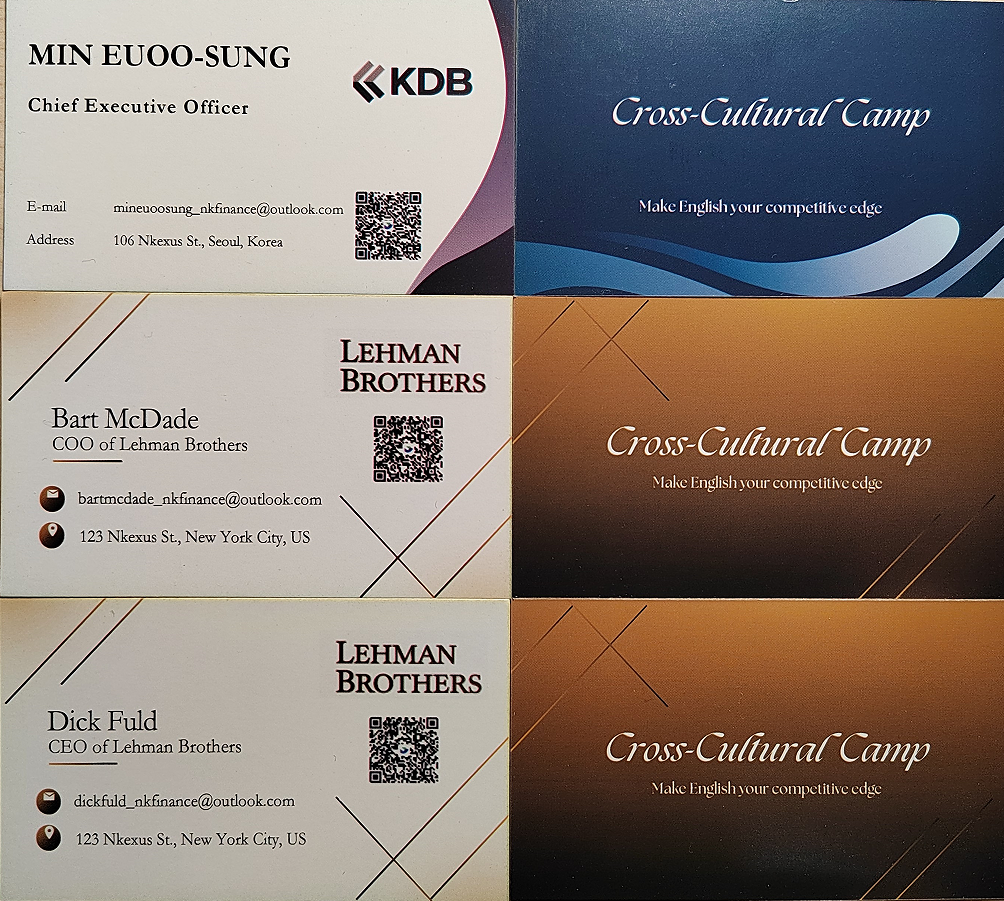参与者三人成组,分别扮演雷曼兄弟与韩国产业银行在谈判中的关键角色。基于背景资料、效用评分表及隐藏议程,各小组通过英文谈判推动并购达成并完成合同签署。活动不仅提供了定制的商务名片作为道具,以增强情景代入感,更通过最终效用评分表,对每位同学的谈判策略与成果进行了量化评价,提供了直观的能力反馈。
