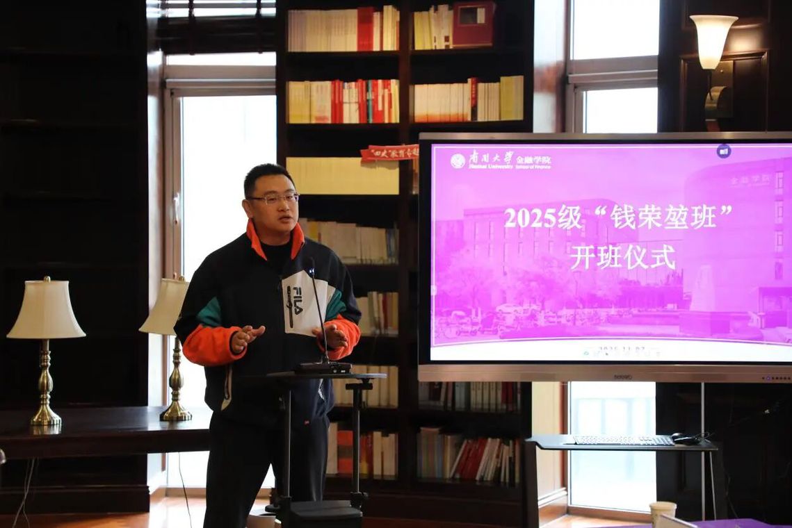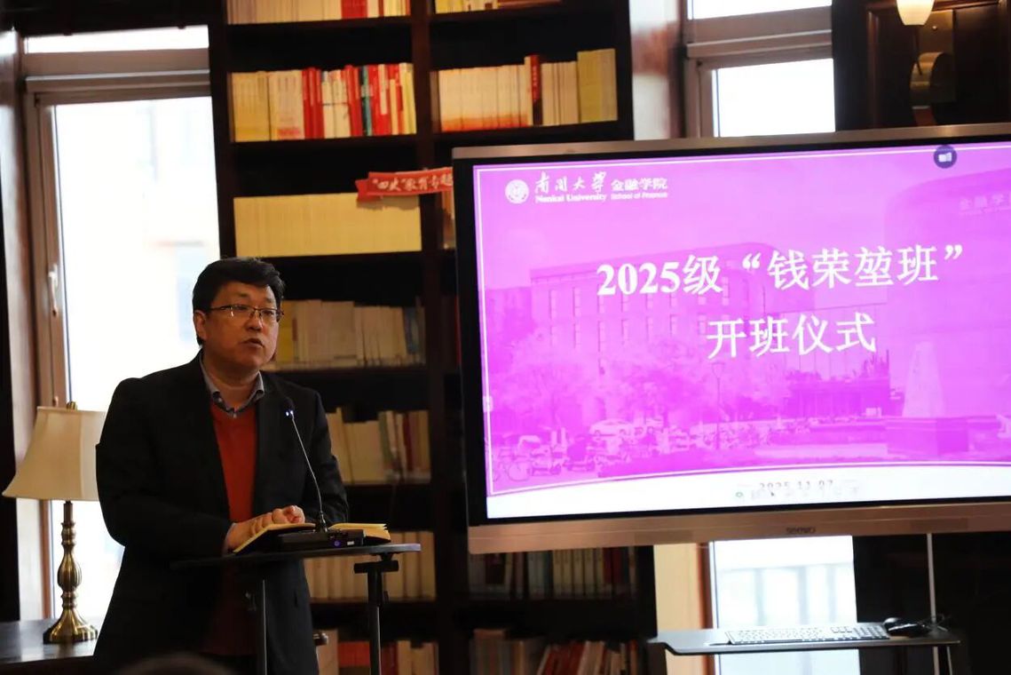11月7日,betway88西汉姆联创新拔尖人才培养项目——2025级“钱荣堃”班开班仪式于宁一弘道书斋成功举行。公司党委书记张尧,经理范小云,副经理、金融学系主任李泽广,副经理贺佳,2025级钱荣堃班班导师李欣明,2022级钱荣堃班导导师张晓琳,本科教学办王金连、赵淼,2025级辅导员刘向龙及2025级“钱荣堃”班全体同学参加了开班仪式,开班仪式由贺佳主持。