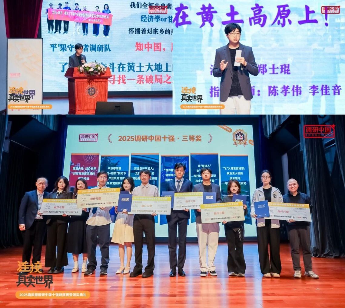 近日,2025年南风窗“调研中国”全国老员工社会调研实践活动全国十强榜单揭晓。betway88西汉姆联2023级本科生郑士琨(实践队长)、陈致合、丛泽萌、王丽雯、马裕涵,2024级本科生徐恺璐,材料学院2023级本科生张家浩和电光学院2024级本科生柳胜玲共同组成的“平”果守护者调研队,在陈孝伟教授、辅导员李佳音老师的指导下,凭借《平凉市两县“农险+期货”模式下苹果产业风险管理及未来发展研究》研究课题,历经百强、三十强和十强的激烈角逐,从全国232所高校的565支队伍中脱颖而出,获评年度十强团队、大赛三等奖。