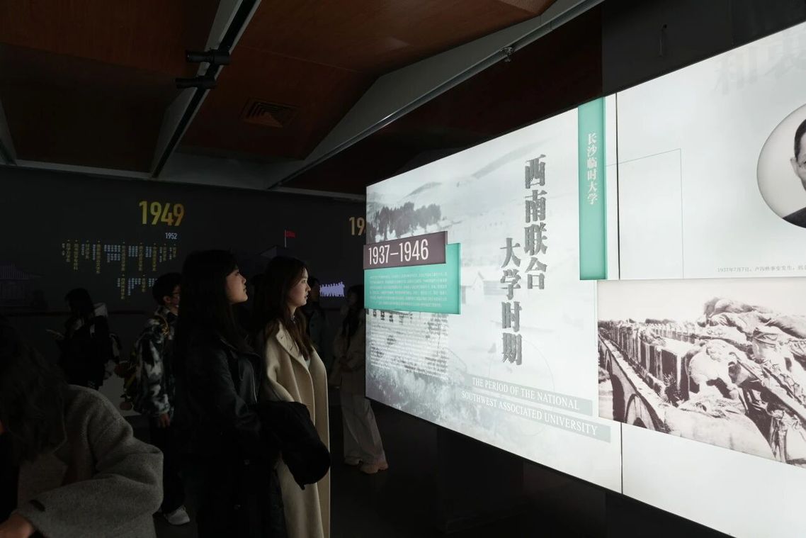 下午,三校师生共同参观了北京大学校史馆。师生们沿着历史的脉络,重温了北京大学的创建发展与时代变迁。特别是在西南联大时期的展陈前,师生们驻足良久,通过详实的文献档案深入了解三校在烽火岁月中同舟共济、弦歌不辍的感人历史,深刻感悟到“刚毅坚卓”的联大精神如何在艰苦环境中淬炼形成。