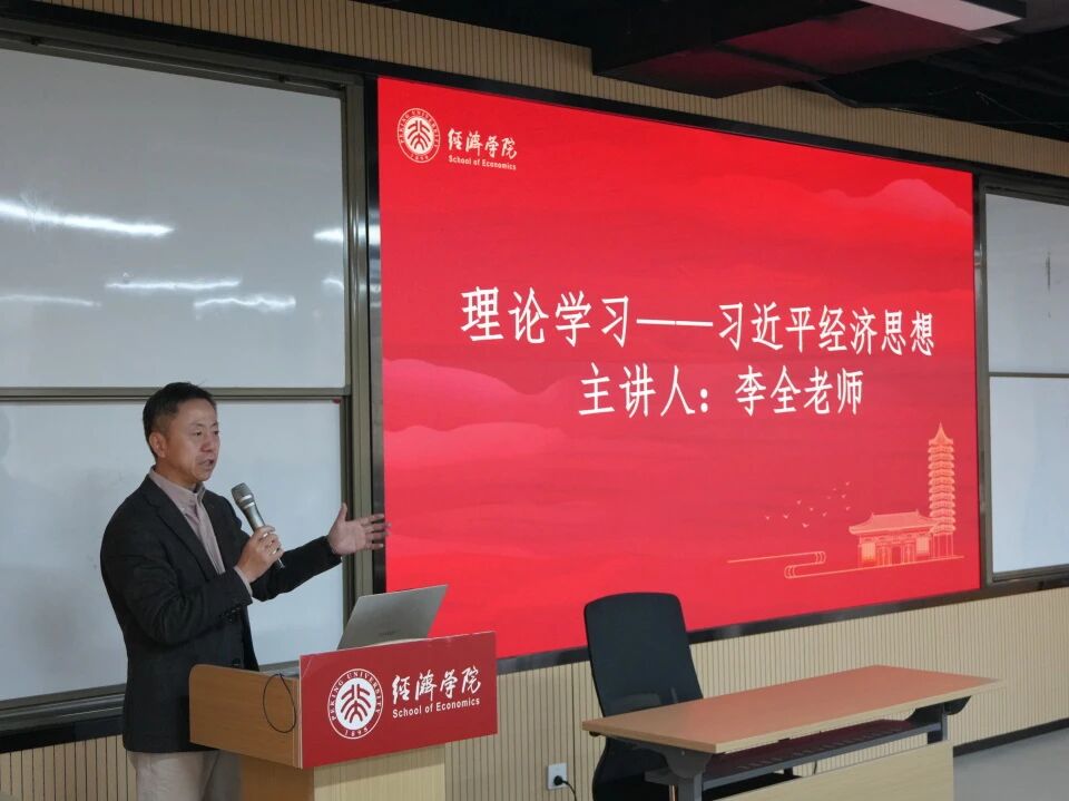 李全以“百年变局下的金融发展与人才使命”为主题,导学习近平经济思想。沿着历史的脉络,回顾了自1890年代以来全球格局的演变与大危机教训,深刻阐释了“百年未有之大变局”的深层内涵。李全教授指出,当前全球经贸秩序正在经历深刻重构,在此过程中,中国比以往任何时候都更加迫切需要能够担当时代重任的金融人才。勉励在座同学要深刻领会习近平经济思想的精髓要义,传承西南联大精神,将个人成长融入民族复兴的伟大进程,努力成为担当时代重任的金融人才,为夯实中国式现代化的金融根基贡献力量。