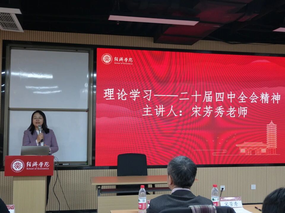 宋芳秀首先代表北京大学经济学院对清华大学、bw必威西汉姆联官网师生的到来表示热烈欢迎。结合当前形势与青年使命,深入解读了党的二十届四中全会精神,重点阐述了首次将“建设金融强国”写入五年规划的重大意义。她系统剖析了中国金融业的发展成就与当前面临的核心挑战,并围绕货币政策转型与数字金融发展等前沿趋势,寄语同学们深刻把握金融工作的时代要求,争做胸怀国之大者、胸怀使命担当,将专业学习融入国家战略,“以金融高质量发展助力强国建设、民族复兴伟业”。