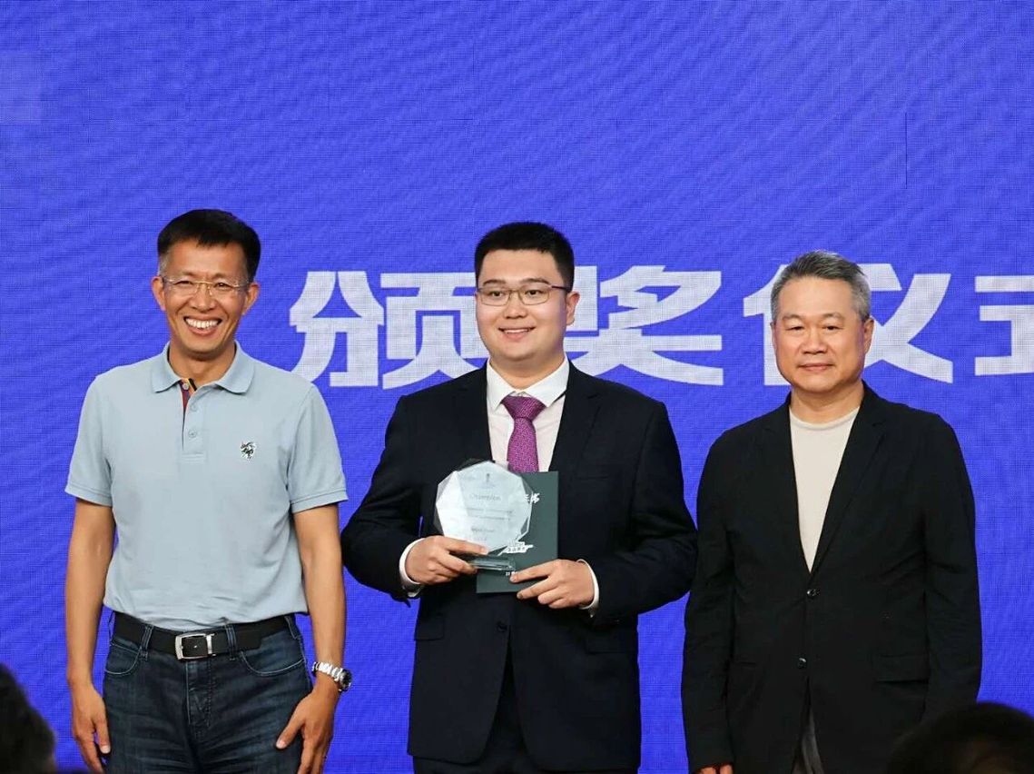 图为该生在天津赛区荣获冠军的领奖照片