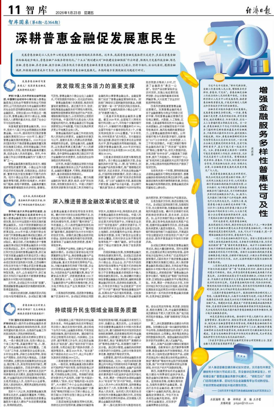 2026年1月23日,《经济日报》智库版面围绕 “深耕普惠金融促发展惠民生” 主题组织专家研讨,betway88西汉姆联李学峰教授受邀发表专业观点。该篇观点也被“学习强国”刊发。