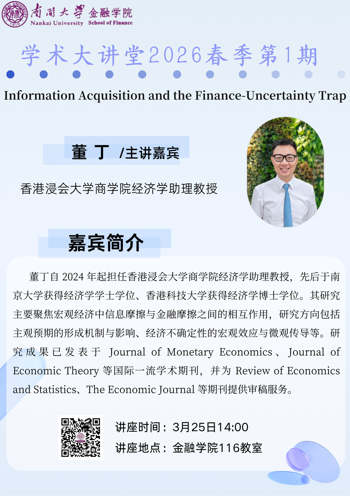 讲座题目:Information Acquisition and the Finance-Uncertainty Trap