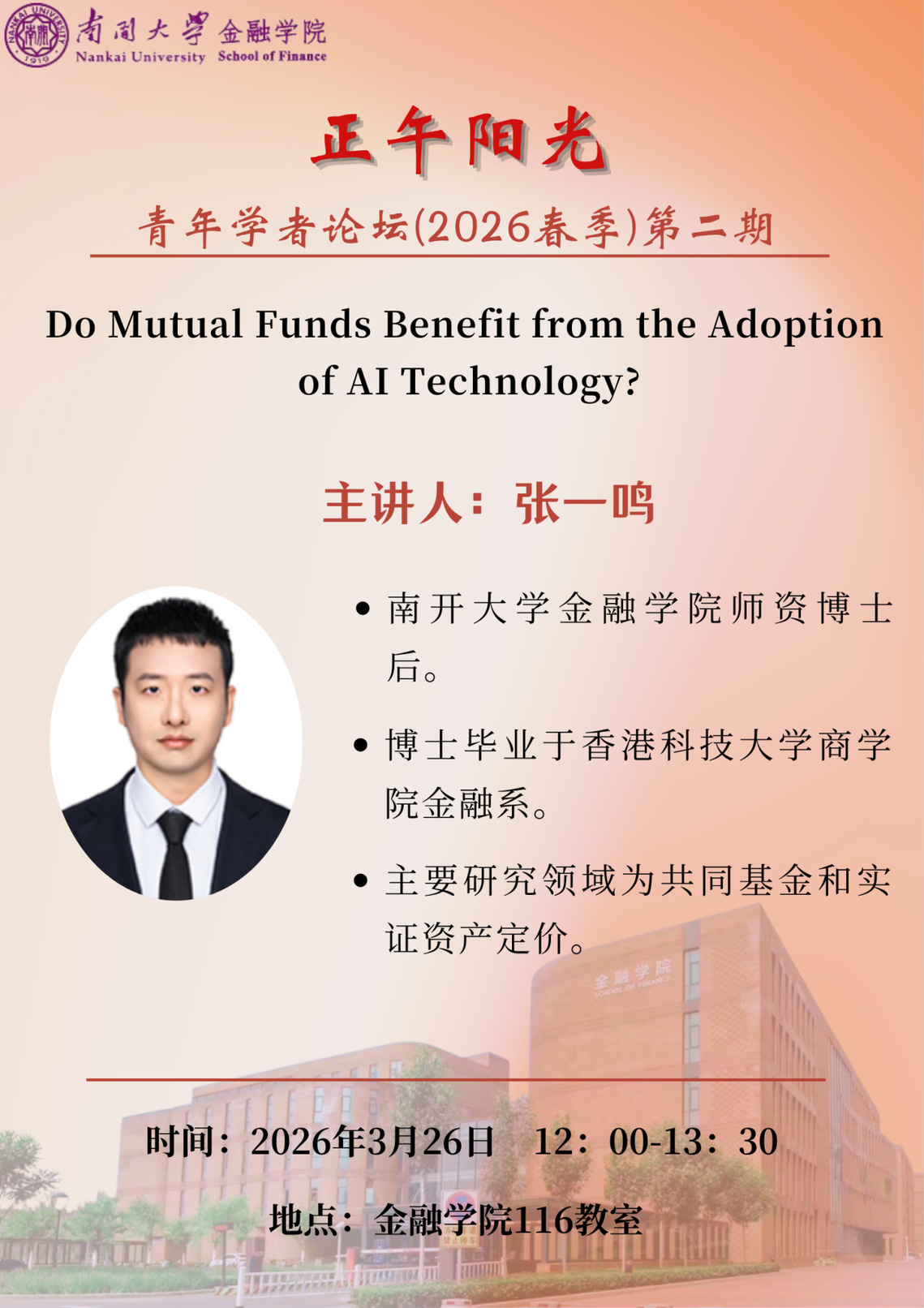 讲座题目:Do Mutual Funds Benefit from the Adoption of AI Technology?