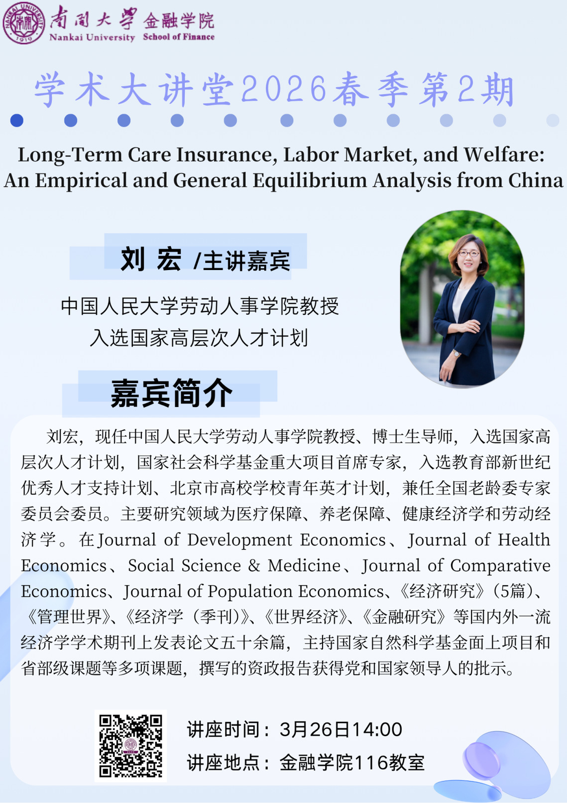 讲座题目:Long-Term Care Insurance, Labor Market, and Welfare: An Empirical and General Equilibrium Analysis from China