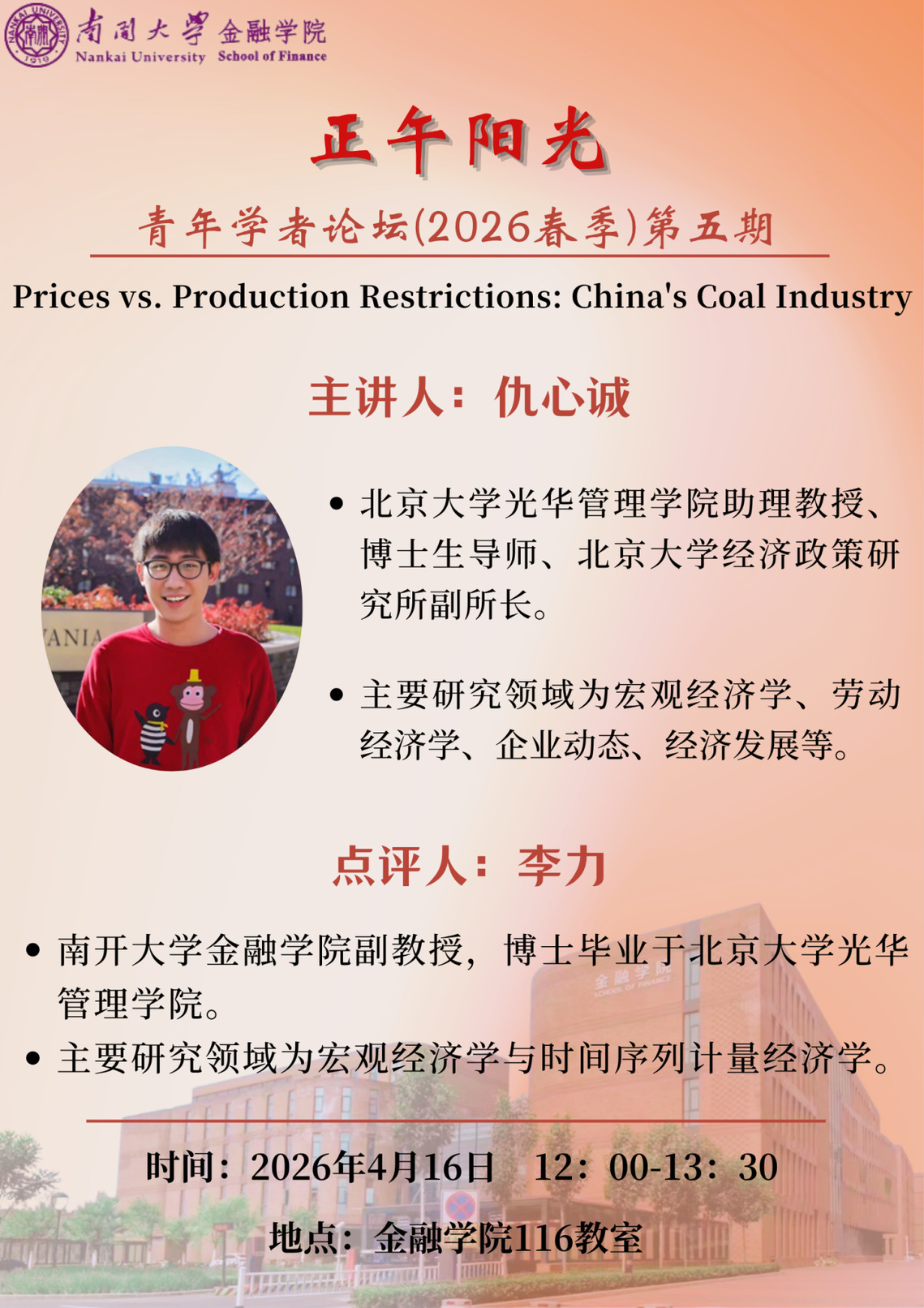 讲座时间:2026年4月16日(周四)12:00 - 13:30